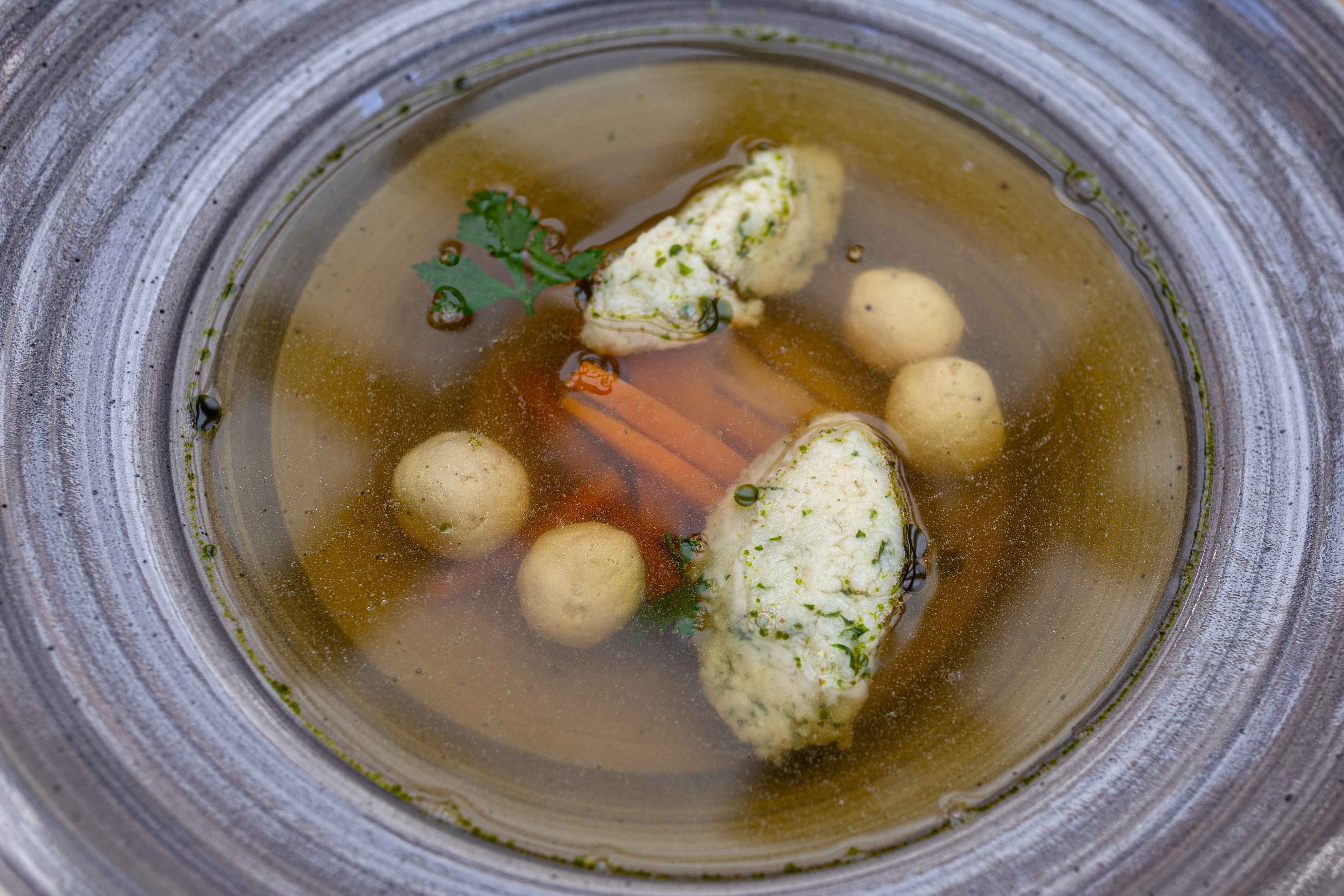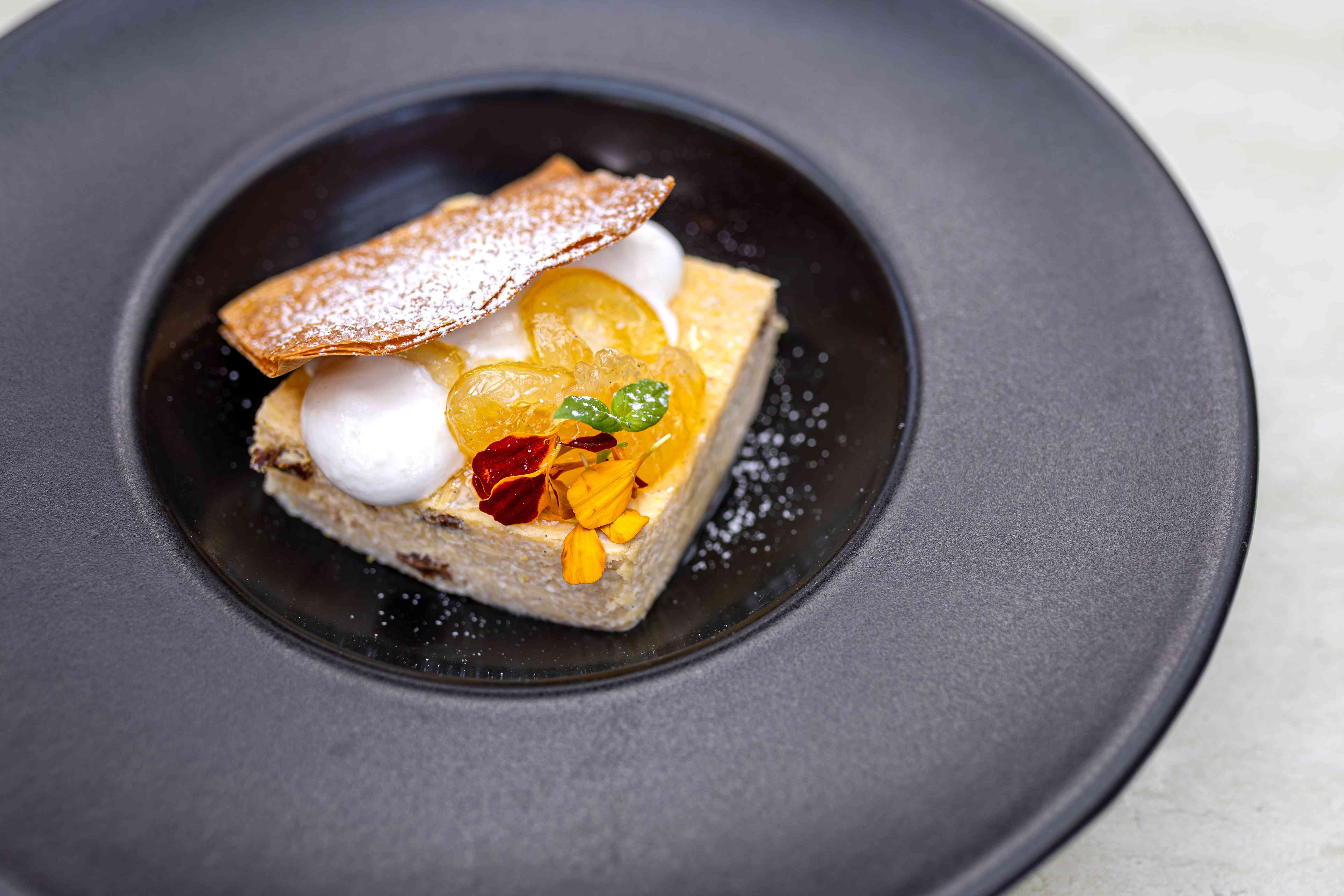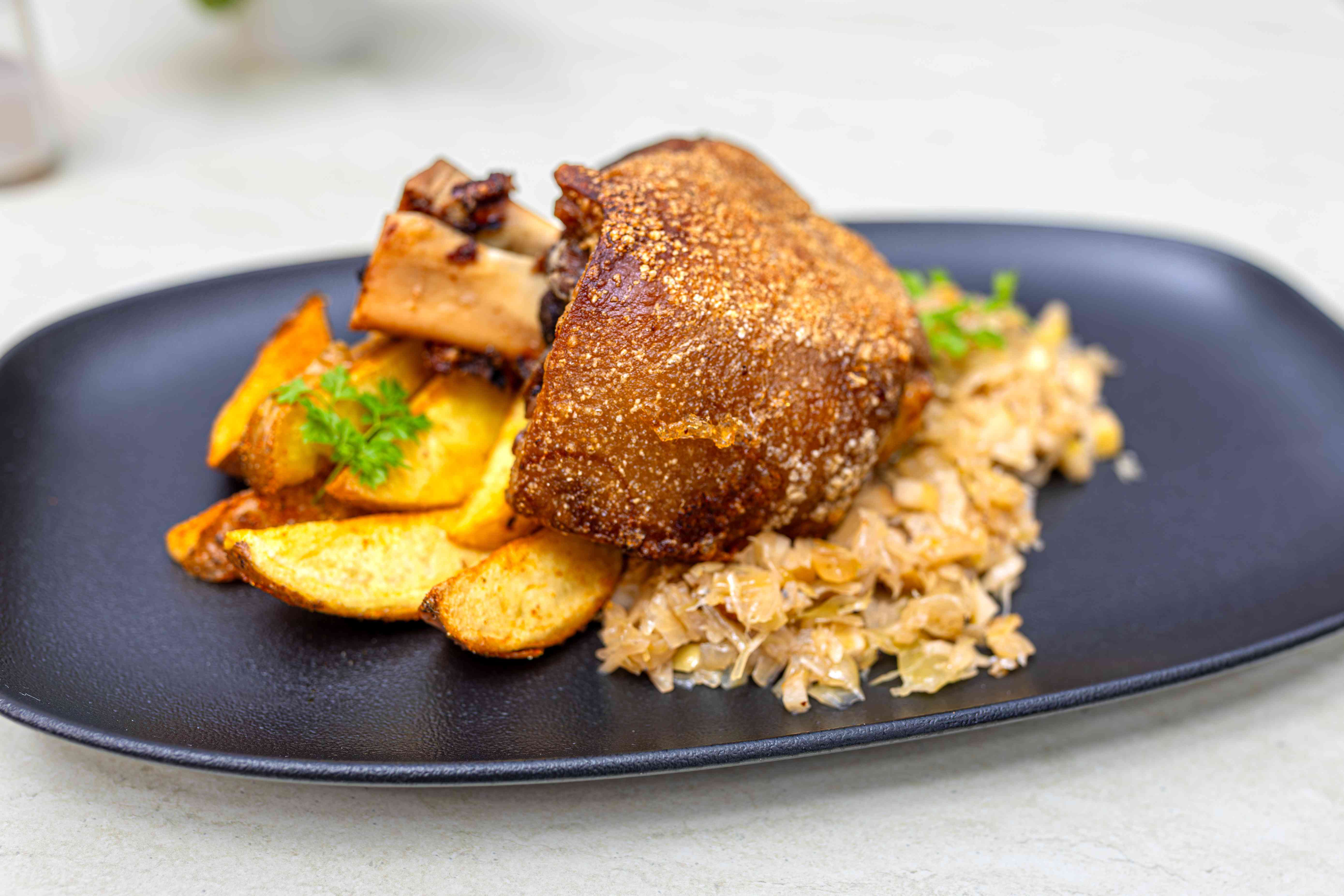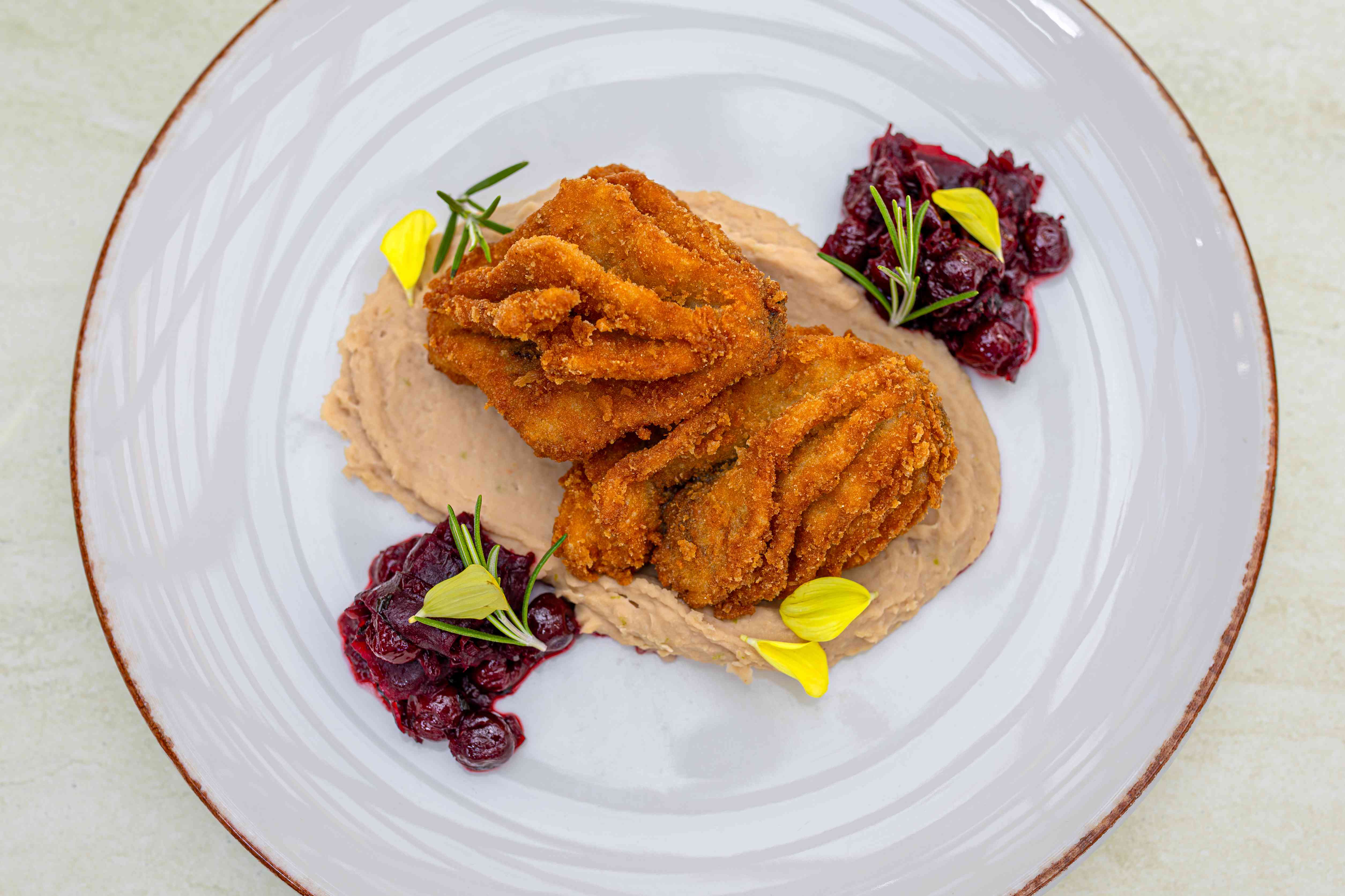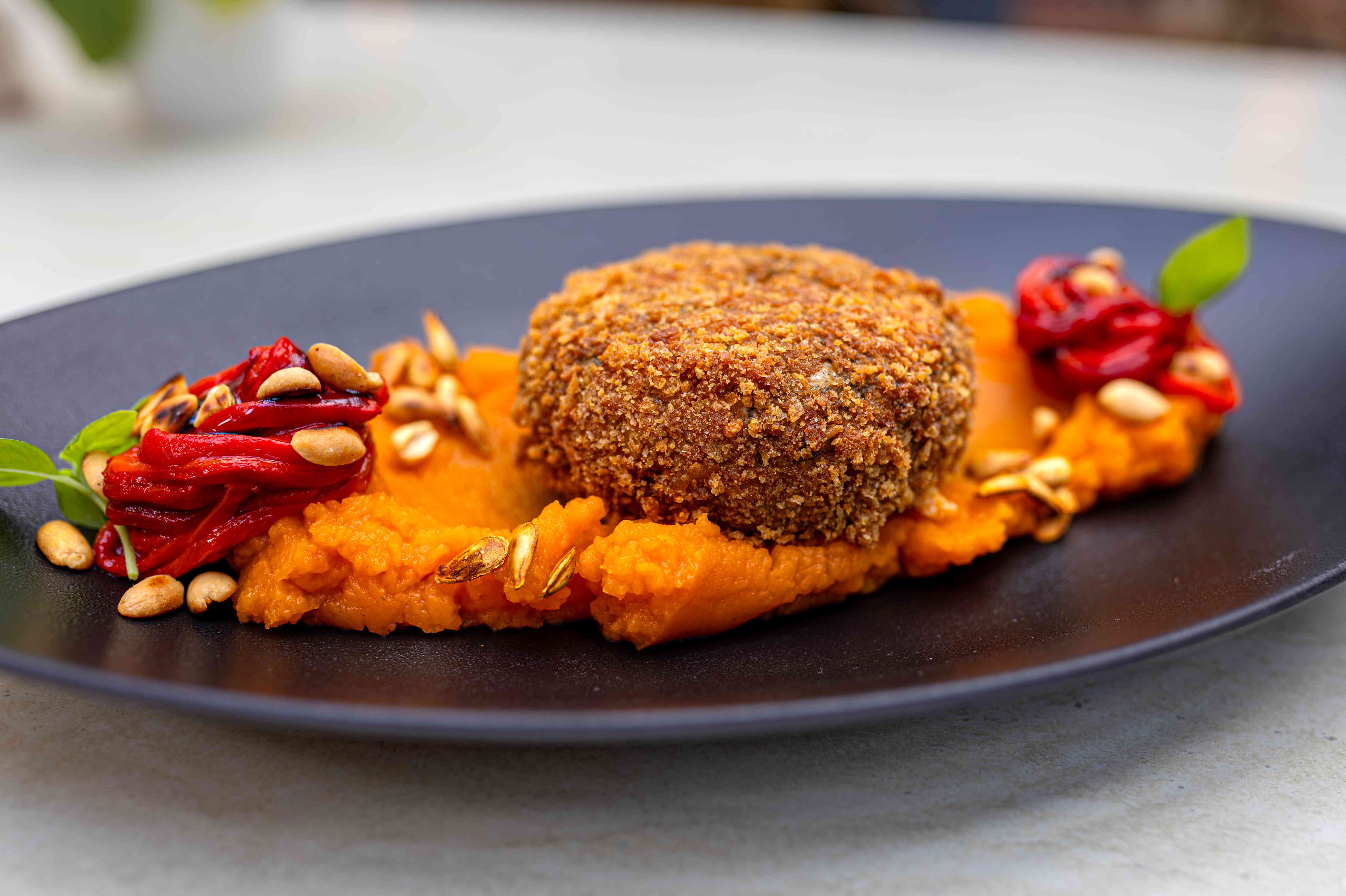 /Cold smoked sturgeon steak, croquette potatoes, wild broccoli, fish sauce, toasted pine nuts/