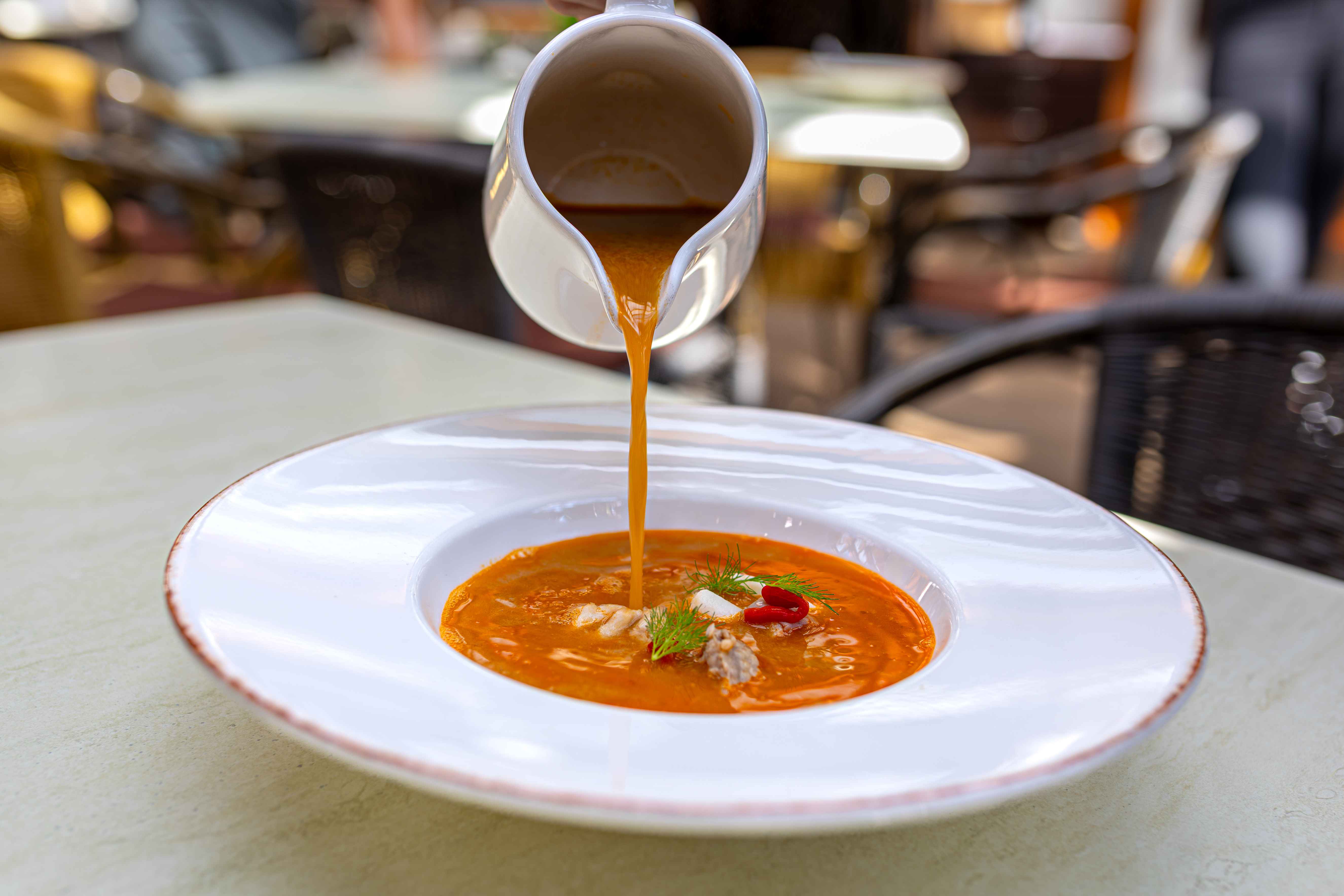/Gold trout fillet, home-made tagliatella, creamy vegetable ragout with soy sauce/